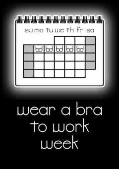 To summarise, wear a bra to work week involves having your husband wearing a bra to work on the pretext of raising money for breast cancer, but really to help ease him into doing so for other reasons. He benefits from not having to worry as much as he might if he didn't have such a convenient explanation to fall back on, you benefit from being able to extend his brassière discipline with less difficulty, and a good cause benefits as a bonus. In all probability, your husband's colleagues remain none the wiser, and the resulting experience can be built upon until he's wearing a bra to work every day, if that's what you want.